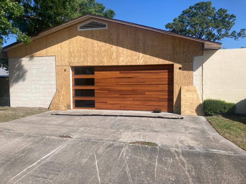 Our customer was remodeling their home and asked us to install a contemporary style garage door. The Cedar color compliments the color of their home. The planks change the total look of their Pensacola FL. home to a more contemporary style.